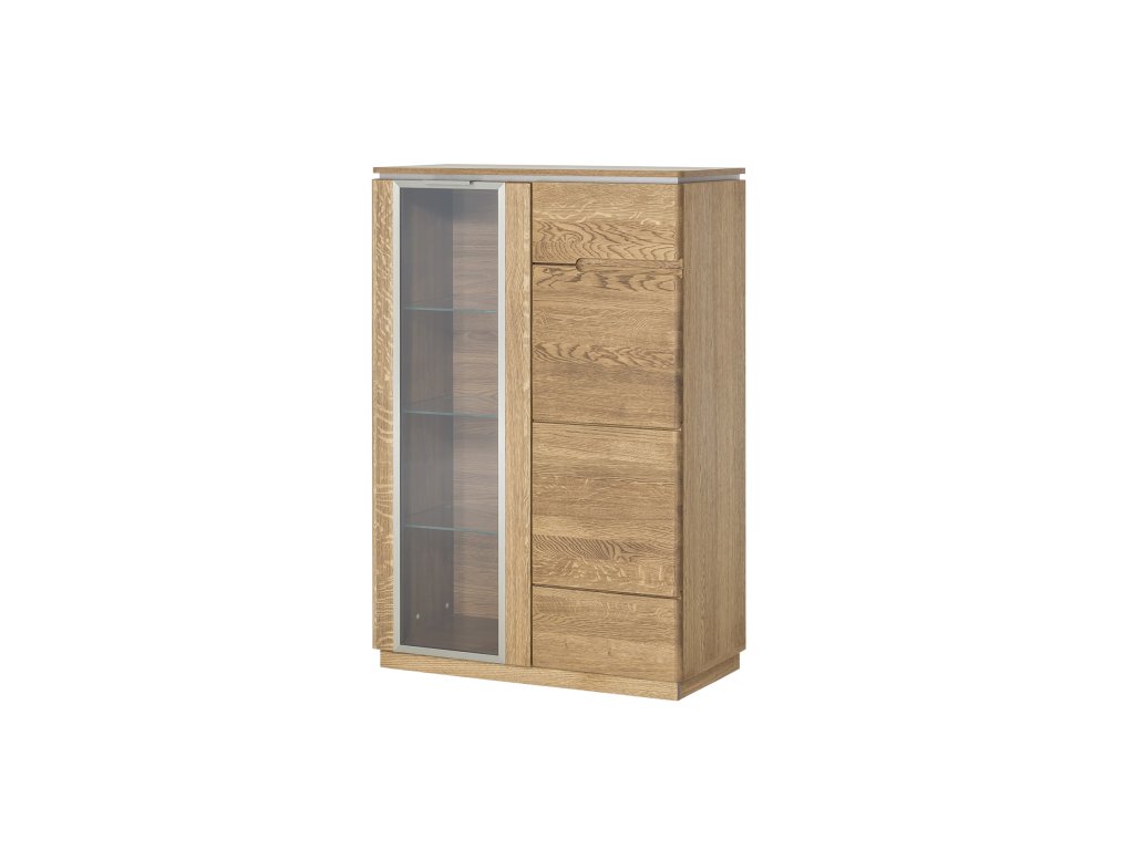 Moderná vysoká vitrína MONASTERY Vám zaručí kvalitné spracovanie a moderný dizajn. Dvierka nábytku sú vyrobené z pravého masívneho lešteného dreva. Sklo vo vitrínach je ohraničené matným hlinikovým rámom. Zadná časť nábytku je vyrobená z prírodnej dubovej dýhy, vnútro je štandardne vyrobené z kvalitnej LTD dosky, ktorá je potiahnutá odolnou fóliou. Povrch nábytku je natretý ochranným ekologickým lakom. K vitríne je možné zakúpenie LED osvetlenia (viď. Doporučené produkty). K zostave je možné dokúpenie ďalších elementov z toho istého sektoru, čím si môžete zostaviť obývačku alebo jedálňu podľa svojich predstáv a potrieb. Dodávame v demontovanom stave.Dodatočné parametre