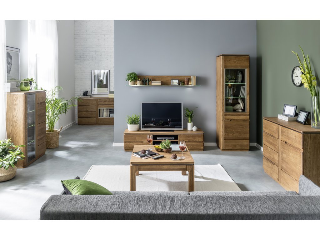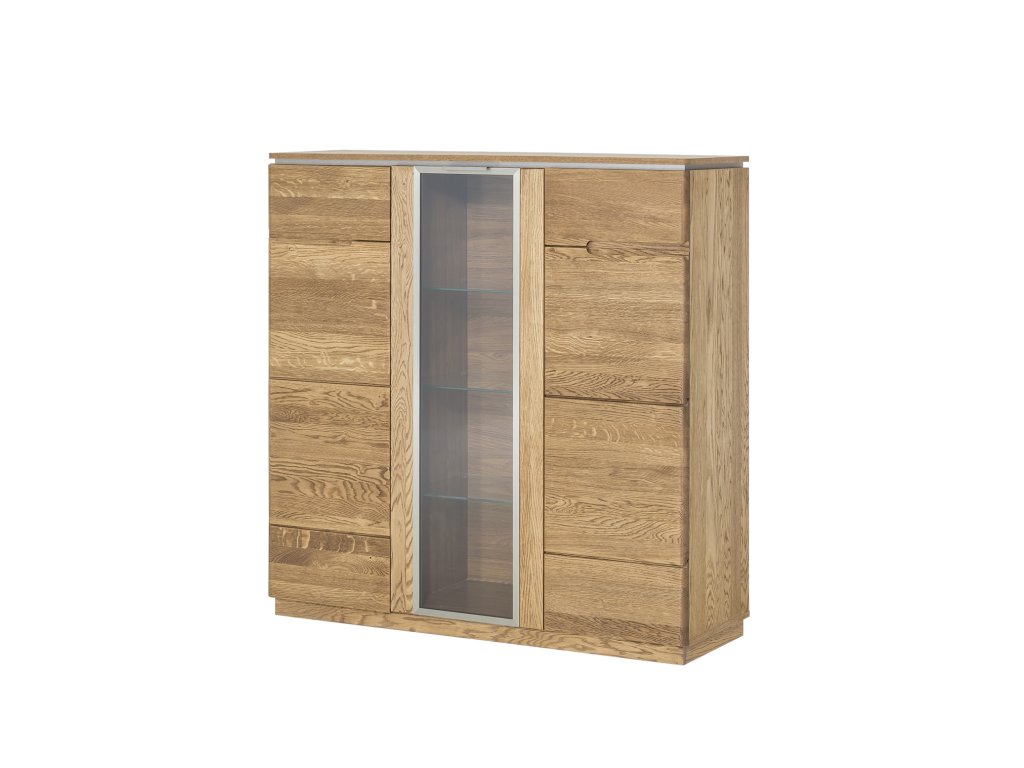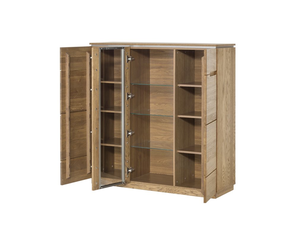 3-dverová barová komoda s presklenenými strednými dvierkami MONASTERY, Vám zaručí kvalitné spracovanie a moderný dizajn. Dvierka nábytku sú vyrobené z pravého masívneho dreva. Zadná časť nábytku je vyrobená z prírodnej dubovej dýhy, vnútro je štandardne vyrobené z kvalitnej LTD dosky, ktorá je potiahnutá odolnou fóliou. Povrch nábytku je natretý ochranným ekologickým lakom. Vnútro je tvorené policami. Komodu je možné podsvietiť LED svetlami, ktoré je potrebné si samostatne dokúpiť (viď. Doporučené produkty). Ku komode je možné dokúpenie ďalších elementov z toho istého sektoru, čím si môžete zostaviť obývačku alebo jedálňu podľa svojich predstáv a potrieb. Dodávame v demontovanom stave.