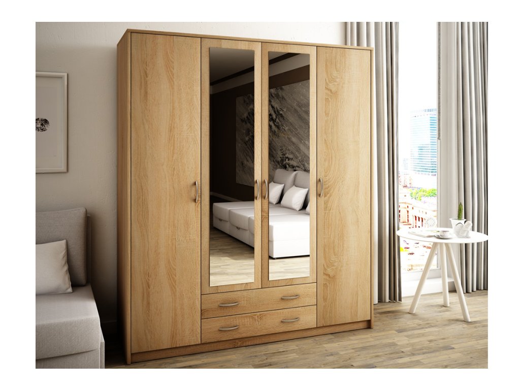 4-dverová skriňa so zrkadlom VILMA 4D2S, dub sonoma