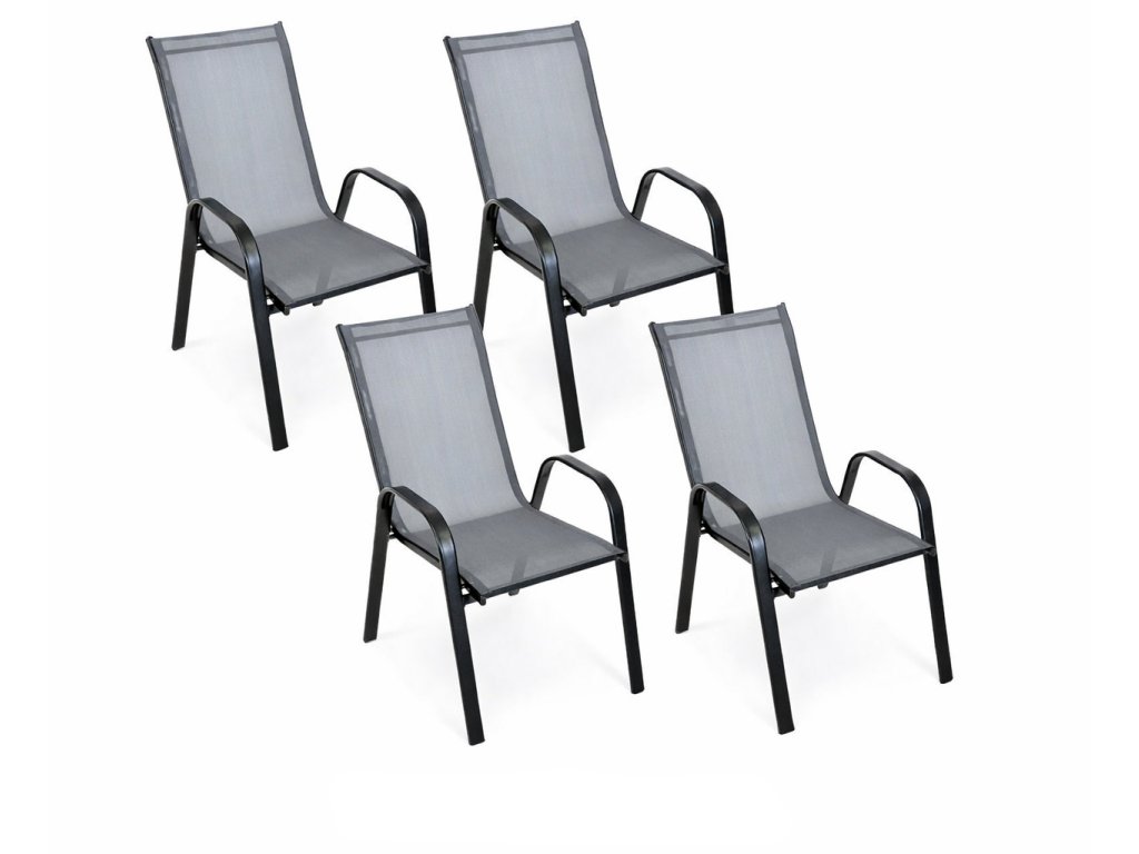 4 ks kovová záhradná stolička DAMARA, čierna/sivá