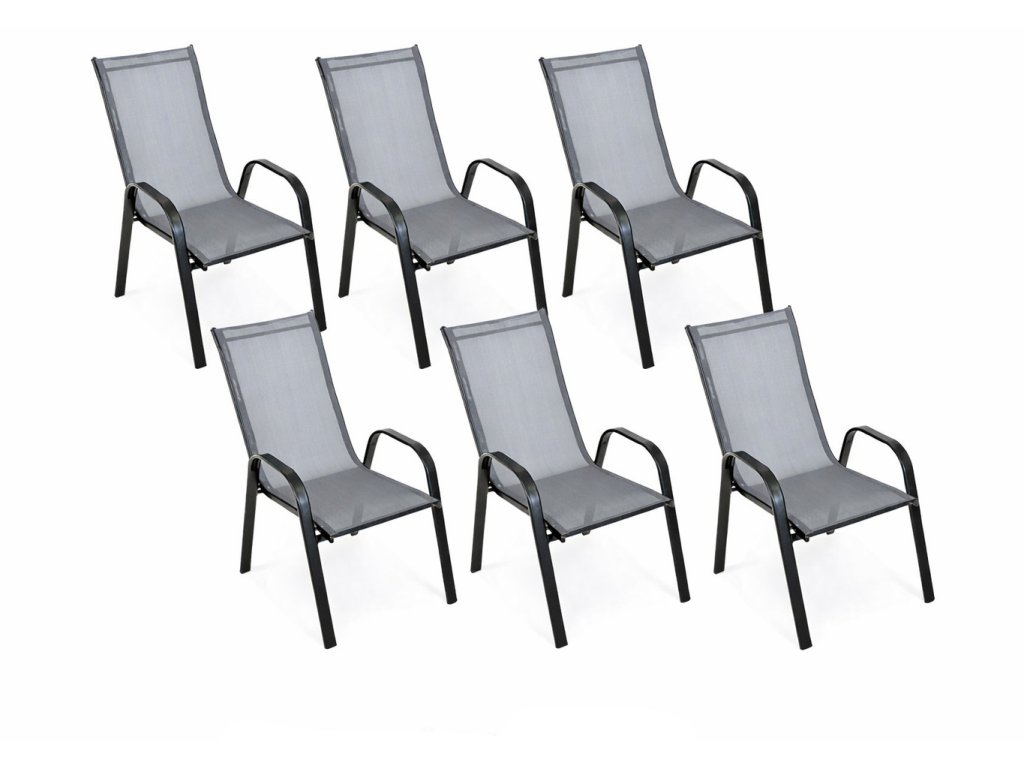 6 ks kovová záhradná stolička DAMARA, čierna/sivá