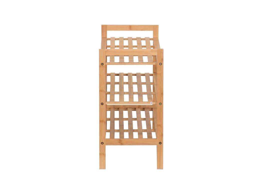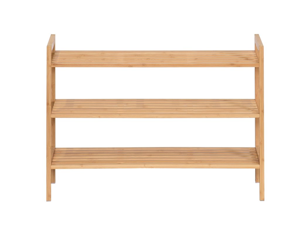 Bambusový regál na topánky BAMBINO je praktický viacúčelový nábytok z bambusu, ktorý využitie hneď niekoľkokrát. Je ideálny do predsiene ako moderný otvorený botník na odkladanie minimálne 9 párov topánok. Tento bambusový regál BAMBINO je ale tiež vhodný aj ako kúpeľňový regál alebo tiež ako prírodný bambusový regál do akejkoľvek inej miestnosti, ktorý Vám umožní prehľadné a šikovné usporiadanie Vašich kníh, dekorácií či spomienkových predmetov. Vďaka odolnému bambusovému materiálu, lakovanej úprave a vďaka kvalitnému spracovaniu je odolný aj voči vlhkosti a tiež jednoduchý na údržbu.