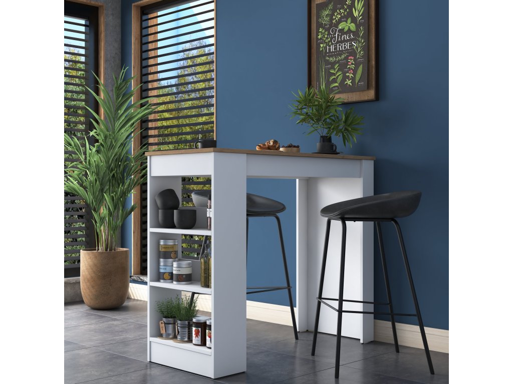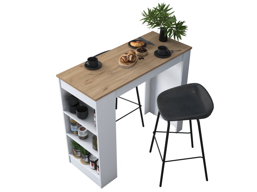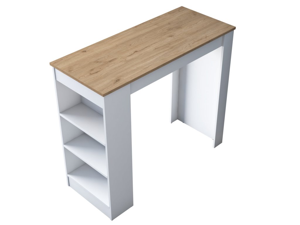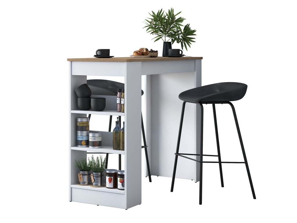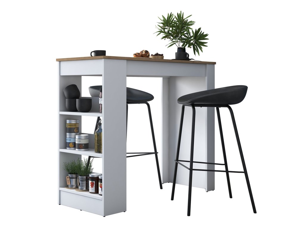 Barový stôl s regálom JANINA, biela/orech