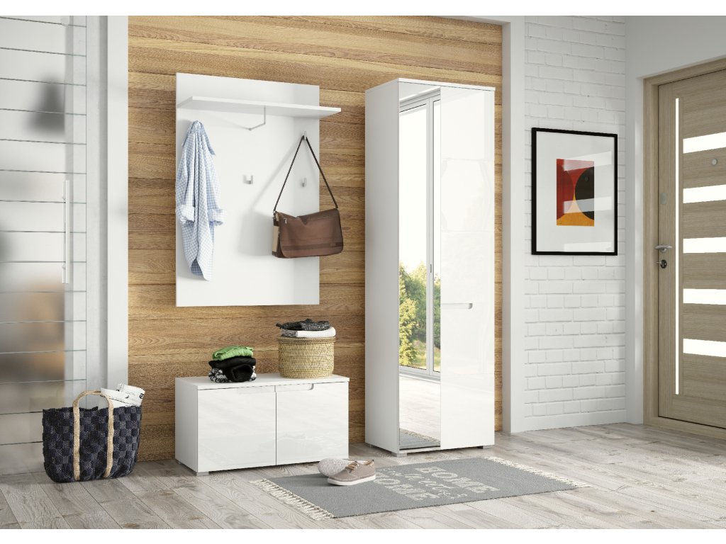 CELENE predsieň je idelálny nábytok do chodby, či vstupnej haly. Tento unikátny nábytok s jemnými líniami a čistými tvarmi Vám ponúka priestor na odloženie búnd, kabátov, topánok či iných drobností. Jednoduchý tvar a rovné línie vytvárajú unikátny nábytok v príjemnej a čistej bielej farbe, kombinovanej s bielym leskom. Tento nábytok oceníte aj vďaka tomu, že sa dá ľahko kombinovať a farebne zladiť. Nábytok je vyrobený z kvalitnej MDF dosky , ktorá je odolná proti poškodeniu. Zostava sa skladá z nasledovných prvkov: