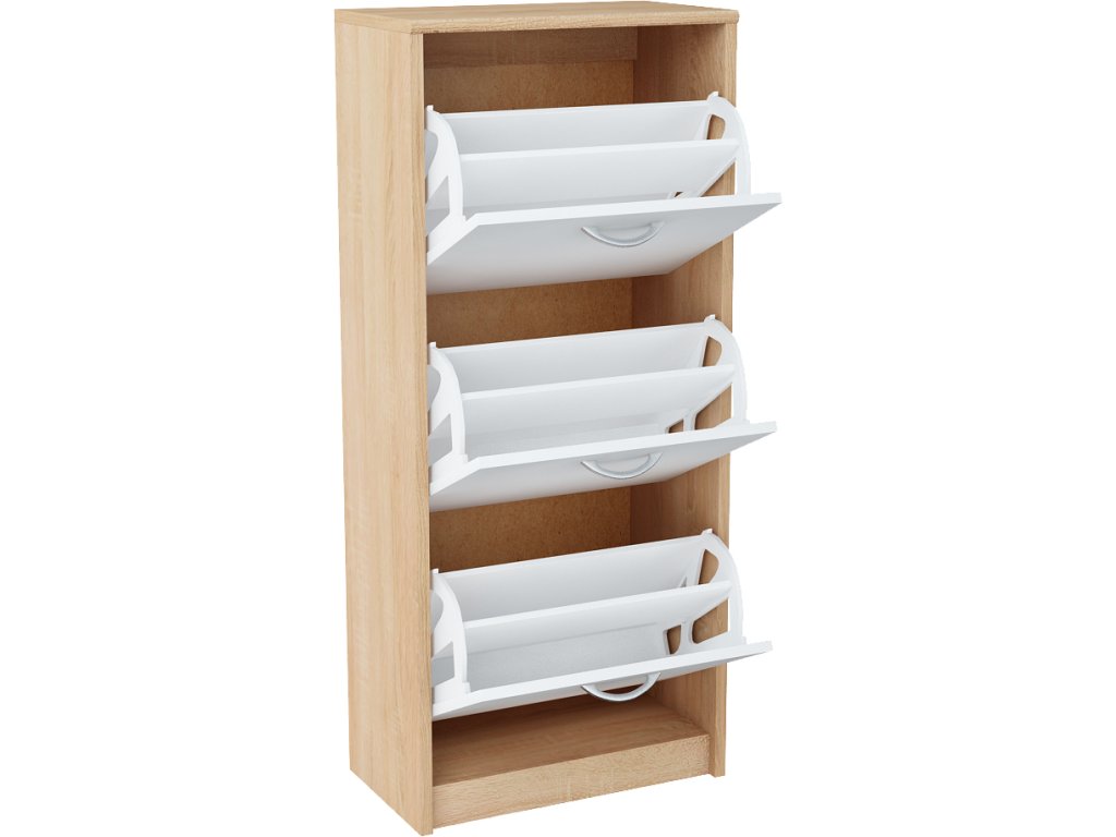 Moderný praktický botník VILMA s tromi dvierkami na Vašu obuv, je vyrobený z kvalitnej LTD dosky. Korpus botníka je v obľúbenom farebnom prevedení dub sonoma, dvierka sú v bielej farbe. K dispozícií máte ďalších 6 farebných prevedení na výber. Úchytky sú z plastu vo farbe alumínium oblého tvaru. Dodávame v demontovanom stave.
