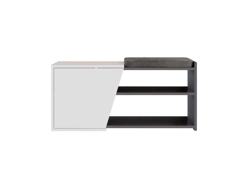 Objavte botník FUTURE, štýlový a multifunkčný nábytok, ktorý prináša sofistikovaný vzhľad a praktické riešenie pre úložný priestor do vašej predsiene. Jeho moderný dizajn v kombinácii antracitu a bielej farby zanecháva silný vizuálny dojem a priťahuje pozornosť.