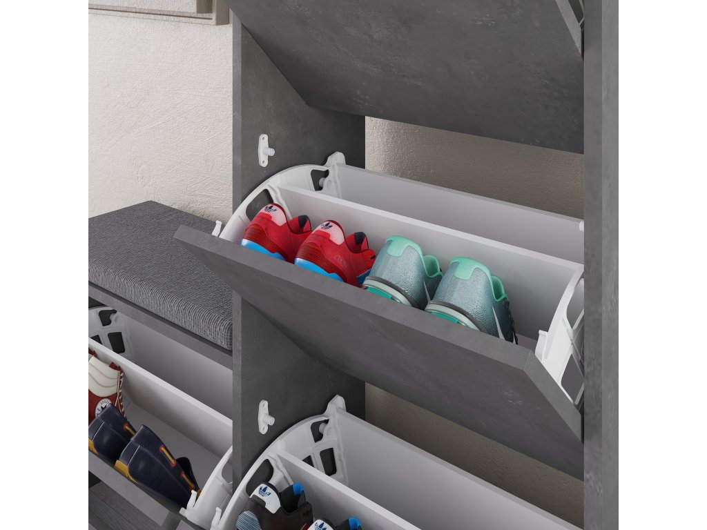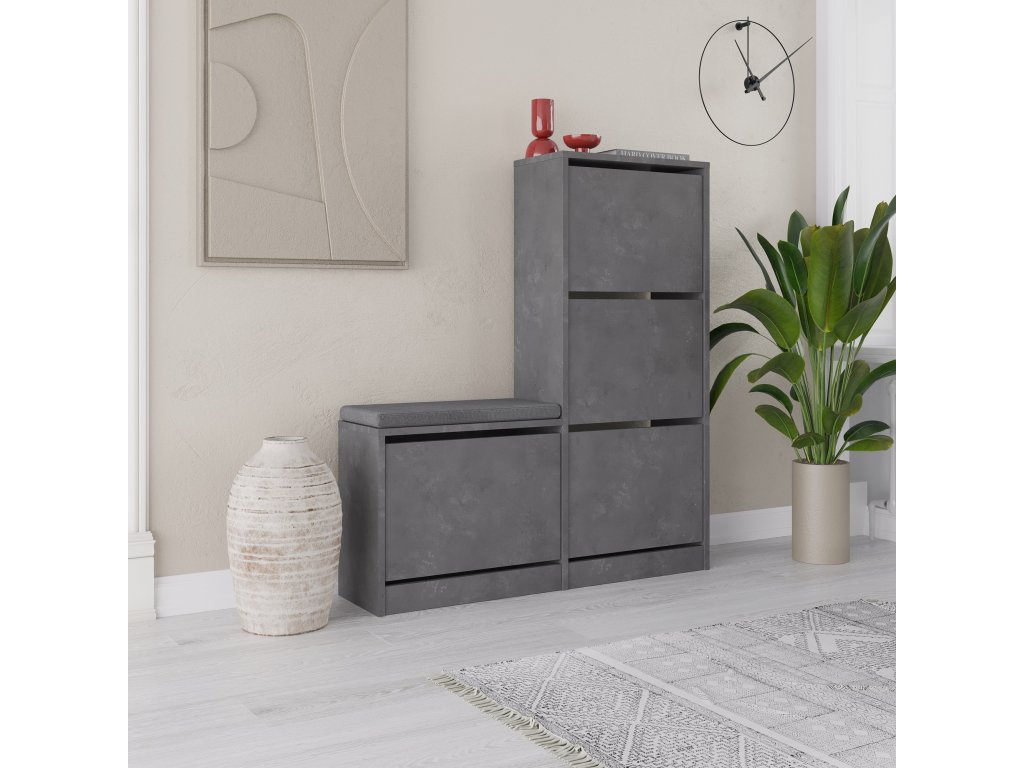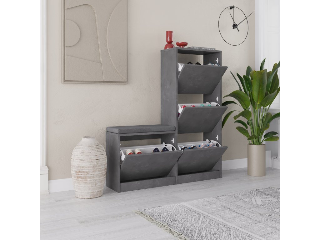 Naša skrinka na topánky nie je len úložným riešením; je to výrazný kus, ktorý vylepší estetiku každej miestnosti. Vďaka svojmu elegantnému a modernému dizajnu dodá vášmu domovu nádych sofistikovanosti. Šedá farba skrinky doplní akýkoľvek štýl interiéru, takže je všestrannou voľbou pre akýkoľvek priestor.