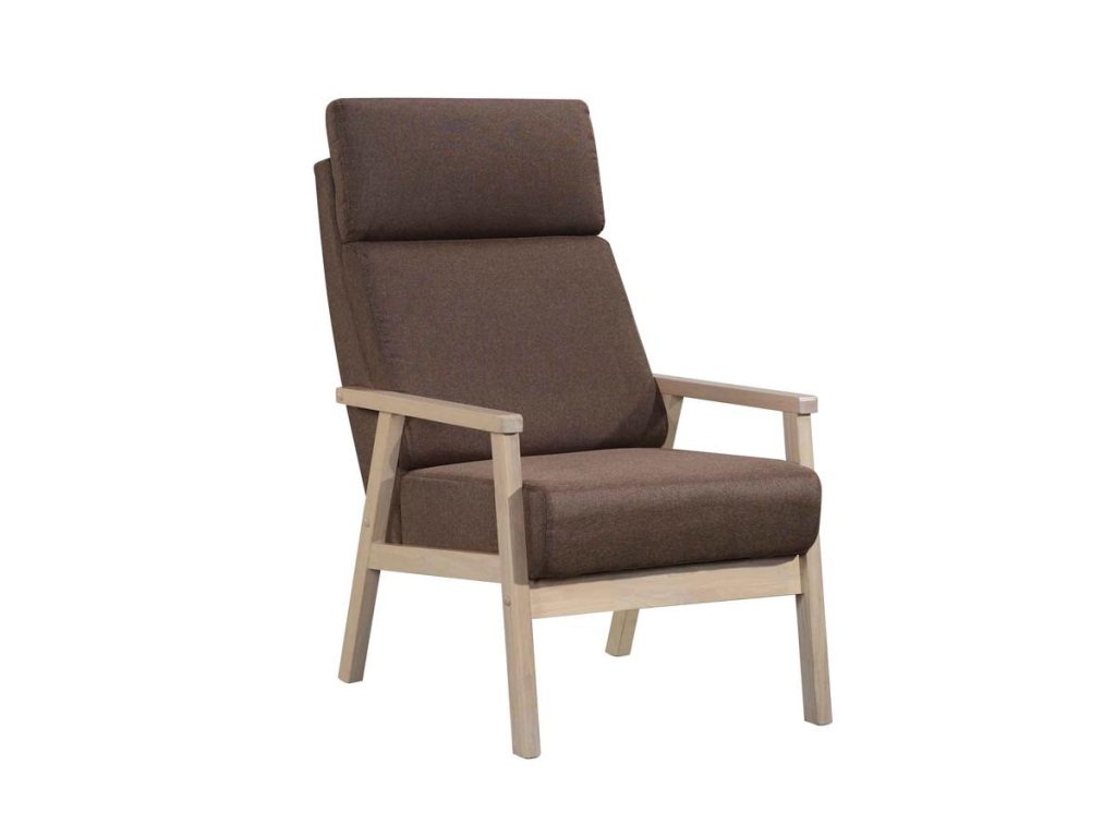 LUSAKA je elegantné čalúnené kreslo s vyvýšenou opierkou, ktorá zabezpečí podporu chrbta aj hlavy. Sedacia časť je vyrobená kombináciou vlnovcovej pružiny a PUR peny. Tým je zabezpečené pohodlné - mäkké sedenie. Nohy kresla sú vyrobené z dreva HEVEA vo farbe biela lazúra. Kreslo je čalúnené kvalitnou hnedou poťahovou látkou.