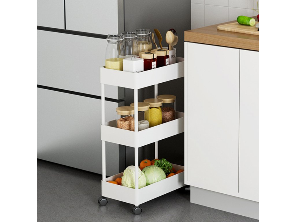 Praktický regál REGGIE 3 je ideálnym kúskom do kúpeľne, kuchyne, skladu či pivnice. Tento skvelý pomocník v bielej farbe ponúka dostatok úložného priestoru v podobe troch priehradok na fľaše, nádoby na potraviny alebo čokoľvek iné podľa vašich požiadaviek. Plastové otočné kolieska zabezpečujú jednoduchú manipuláciu. Konštrukcia regálu je vyrobená z kovu, ktorý je veľmi odolný a samotné priehradky sú zo spodu dierkované, čo zabezpečí vetranie a sú vyrobené z plastu, ktorý sa ľahko čistí a v prípade potreby sa dá ľahko umyť vodou.