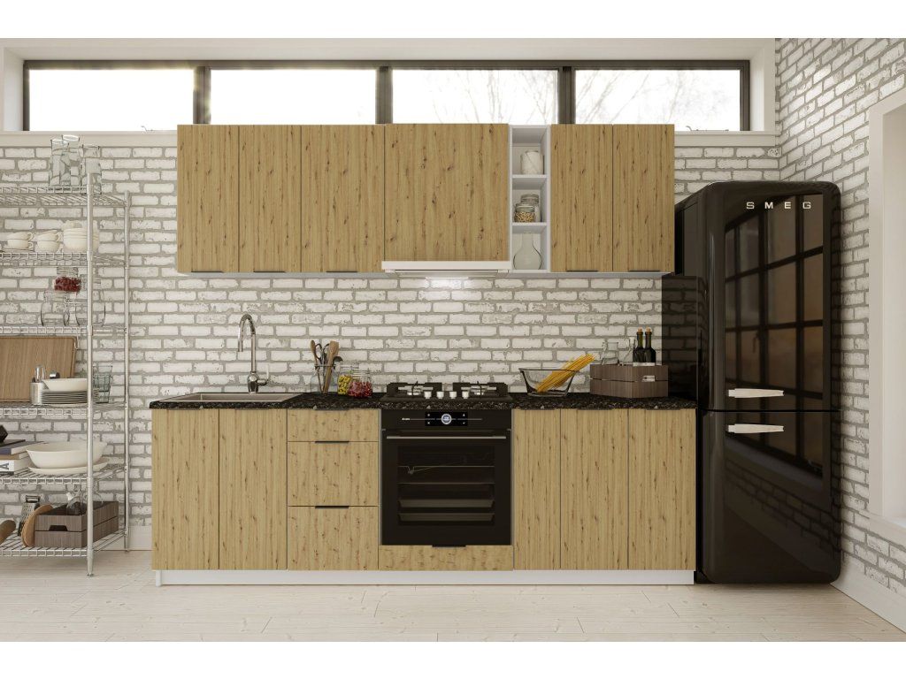 DAISY K 240 jednoduchá kuchynská linka 240 cm, biela/dub Artisan