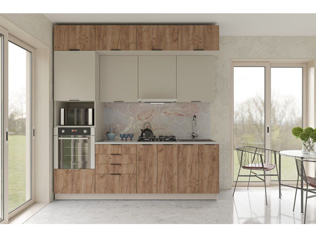 DENIS K 240 jednoduchá kuchynská linka 240 cm, kašmír/kraft tabacco
