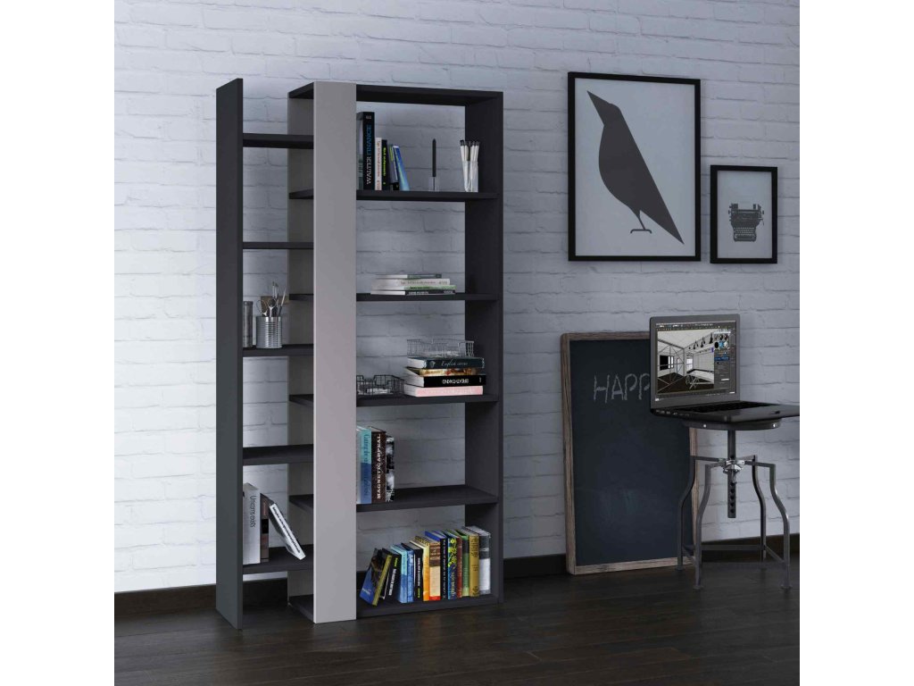 Designová knižnica ZAPHIRA, antracit/svetlá mocca