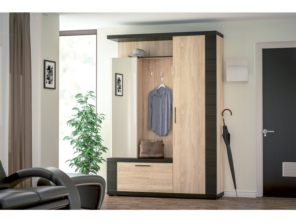 Predsieň MENZO je v dizajnovom prevedení. Jej priaznivá cena poteší nejedného zákazníka. Je vhodná do rôznych typov interiérov. Predsieň je vyrobená z kvalitných LTD dosiek, ktoré sa ľahko udržujú. Je vo farebnom prevedení: dub sonoma a wenge. Predsieňová stena sa skladá z týchto častí: - skrinka na topánky, - vysoká skriňa, - tri vešiaky na bundy, - police, - vysoké obdĺžnikové zrkadlo. Rozmery predsiene (š,v,h): 155 x 216,6 x 44,5 cm. Dodávame v demontovanom stave.Dodatočné parametre