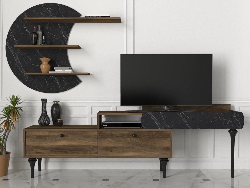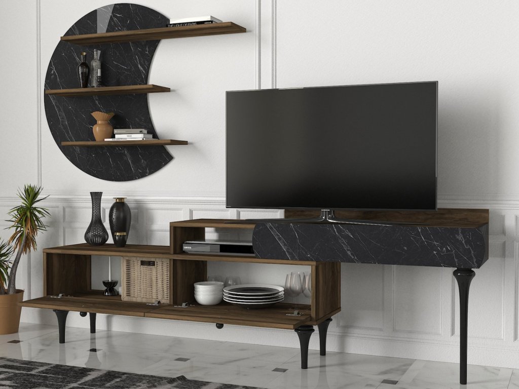 Designová Tv stena DELUXE PADRE, orech / mramor