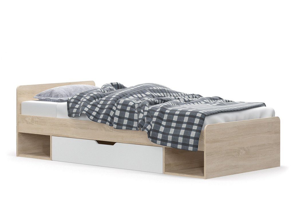 Kolekciu nábytku OLINO ponúkame do študentskej izby. Svojou farebnou kombináciou dub sonoma a biela prevzdušní a zjemní izbu. Za pomoci nábytku OLINO vytvoríte pre svoje ratolesti moderné a praktické bývanie. Súčasťou kolekcie je OLINO posteľ 90. Je vyrobená z veľmi kvalitnej a ľahko udržateľnej LTD dosky. Farba dub sonoma a biela. Posteľ má úložný priestor. Jej súčasťou nie je rošt ani matrac. Máte možnosť vybrať si z našej bohatej ponuky. Rozmery: - šírka: 95,6 cm, - výška: 60 cm, - hĺbka: 203,2 cm, Dodávame v demonte, pričom montáž je veľmi jednoduchá.Dodatočné parametre