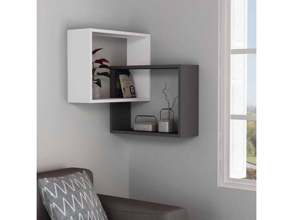 Dizajnová nástenná rohová polica LIX, biela/antracit