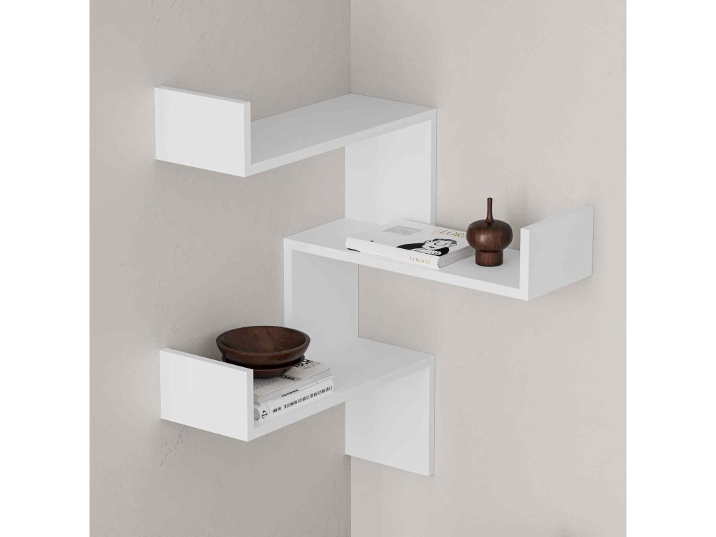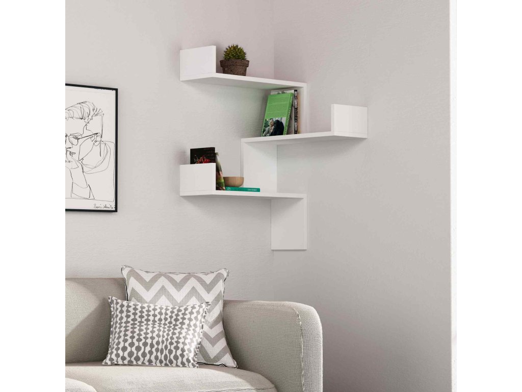 Dizajnová rohová nástenná rohová polica SICIA, biela