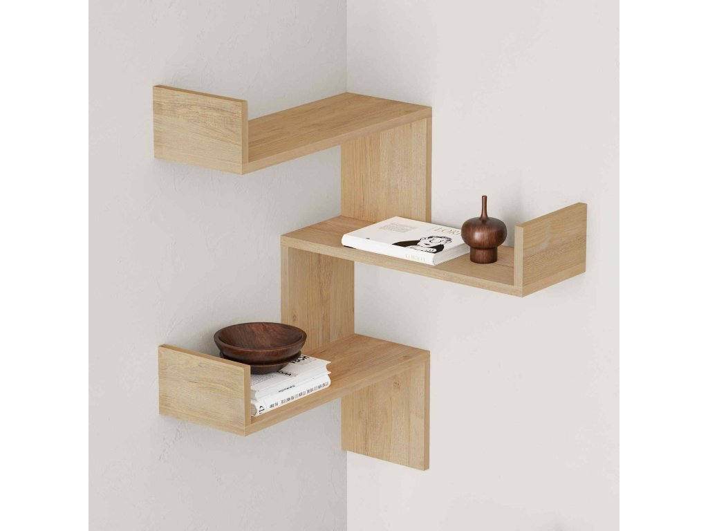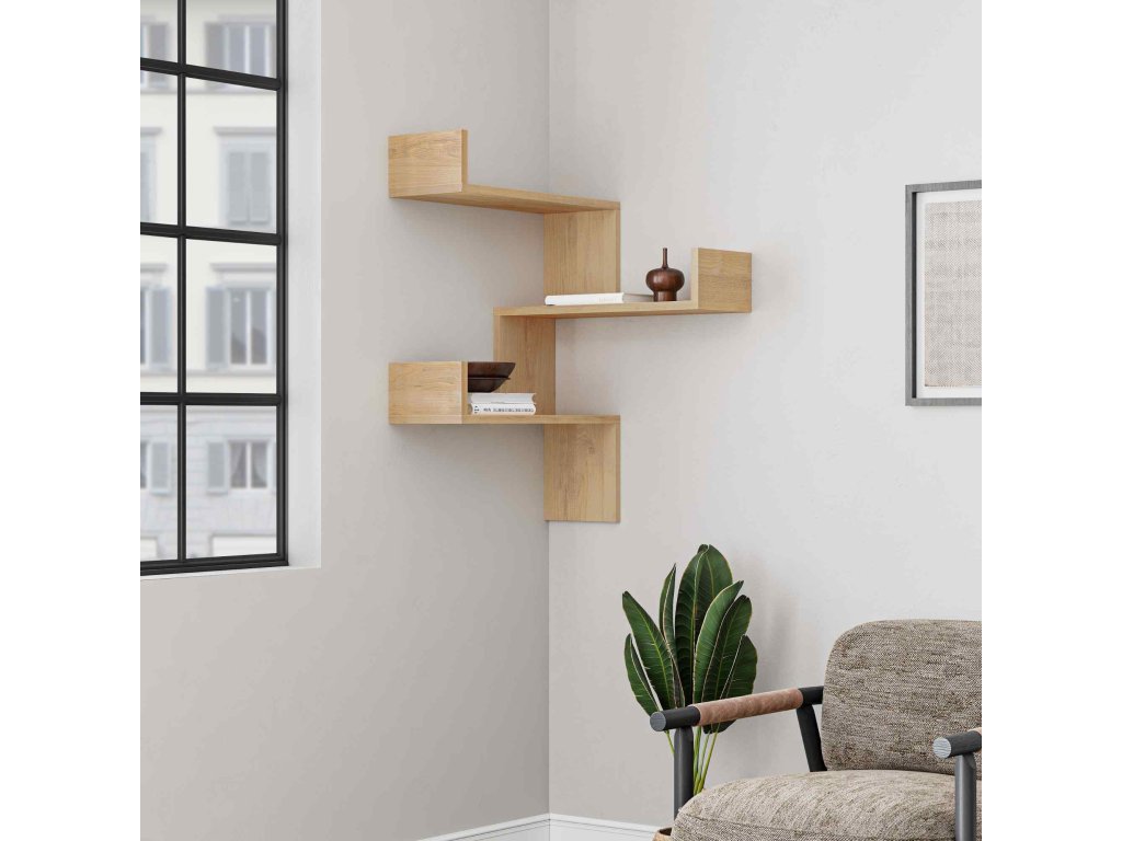 Dizajnová rohová nástenná rohová polica SICIA, dub