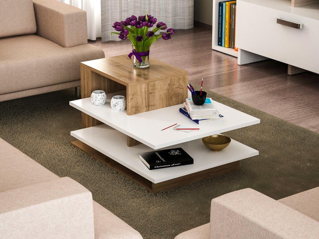 Konferenčný stolík WILIAMS vás zaujme dizajnovým prevedením, ktoré pritiahne pozornosť každého návštevníka. Vďaka otvoreným policiam poskytuje dostatok úložného priestoru na odloženie kníh, časopisov a ostatných drobností, ktoré chcete mať vždy po ruke. Kombinácia farieb biela + drevo s krásnou kresbou dreva dodávajú stolíku jedinečný charakter.