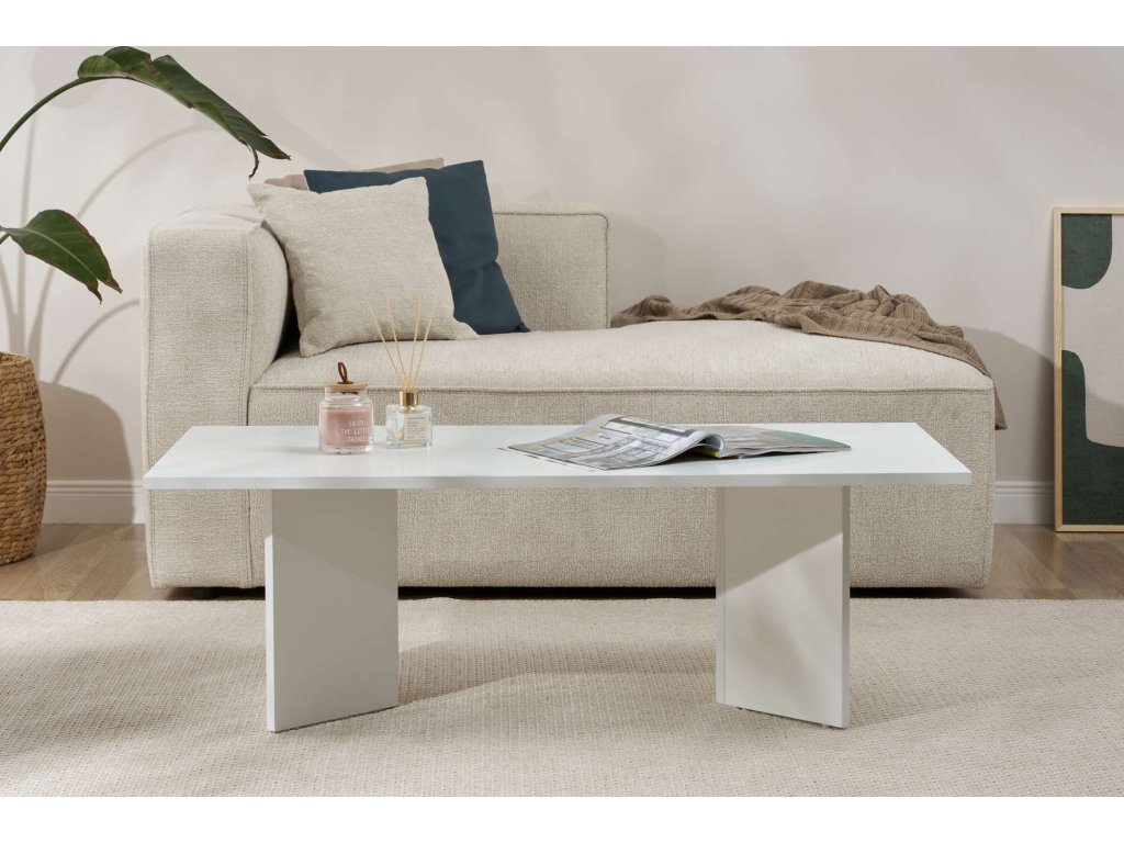Vďaka svojmu elegantnému dizajnu a čistým líniám je tento konferenčný stolík perfektným doplnkom každého moderného alebo súčasného domova. Svieža biela farba rozjasní vašu izbu a dodá mu pocit priestornosti, zatiaľ čo odolný melamínový povlak zaručuje, že obstojí v skúške času.