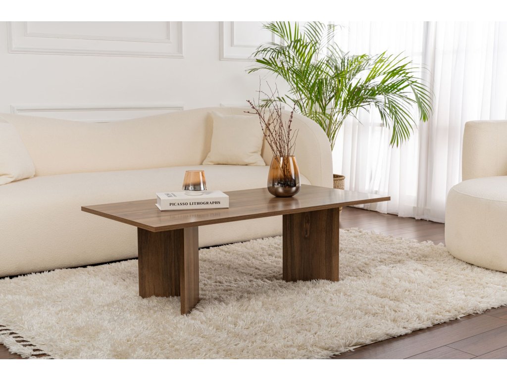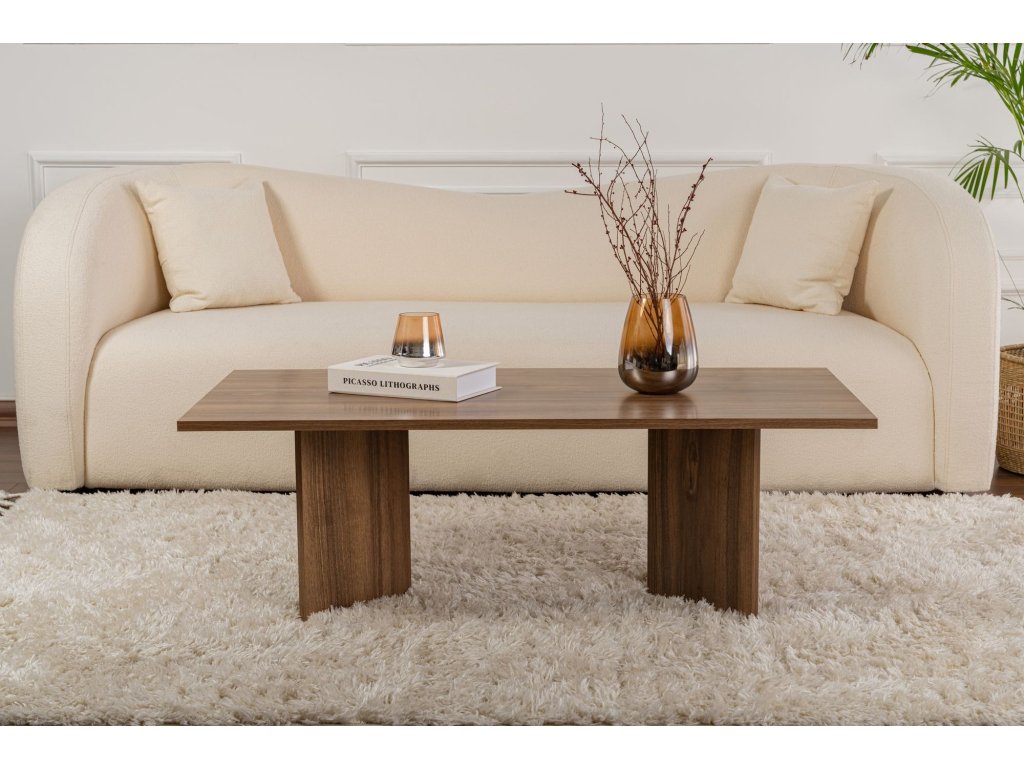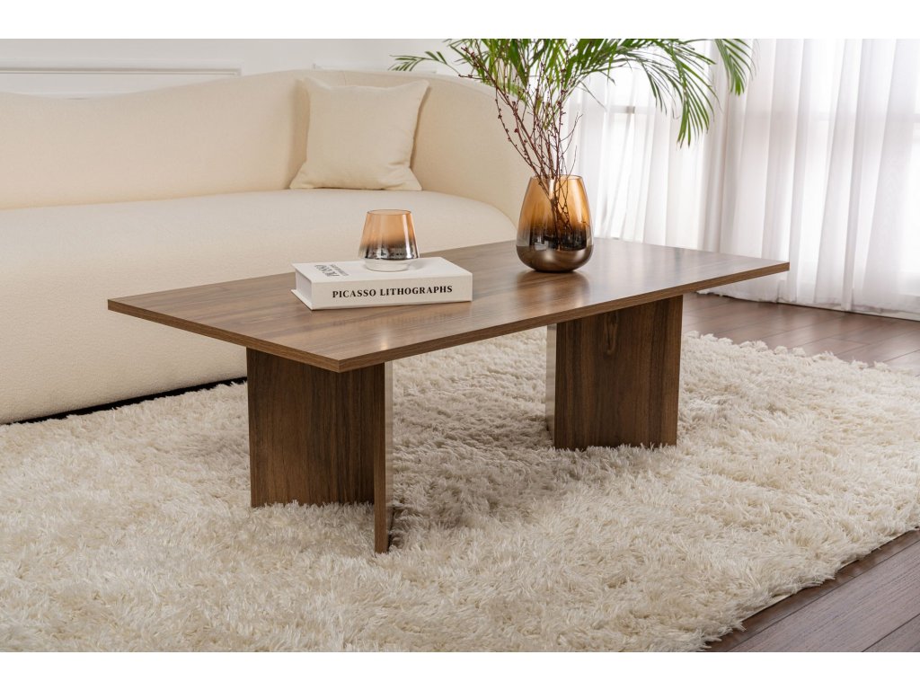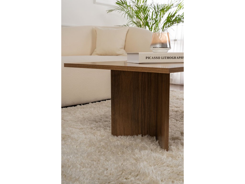 Premeňte svoju obývaciu izbu na útulné a štýlové útočisko s naším nádherným konferenčným stolíkom z orechového dreva. Tento konferenčný stolík je vyrobený zo 100% drevotriesky s melamínovým poťahom a vyžaruje eleganciu a sofistikovanosť. Jeho elegantný dizajn a teplá orechová farba okamžite pozdvihnú atmosféru vášho priestoru a vytvoria príjemnú atmosféru pre vás aj vašich hostí. Jeho moderný dizajn a sýta orechová farba bez námahy doplní akýkoľvek štýl interiéru a stane sa tak perfektným doplnkom vašej obývačky.