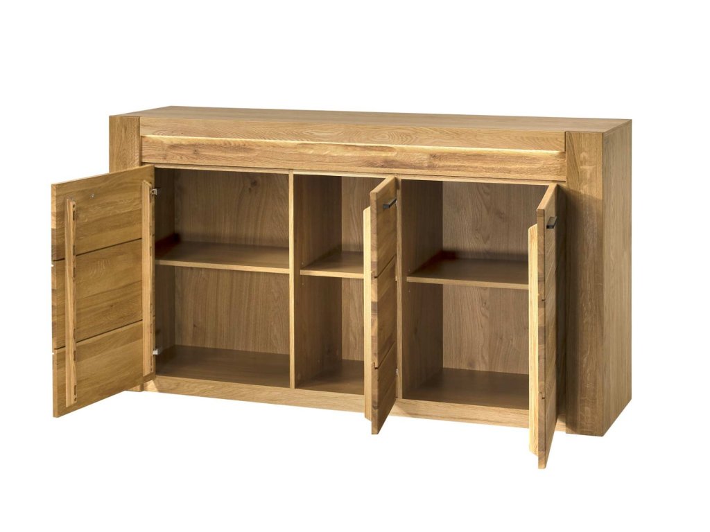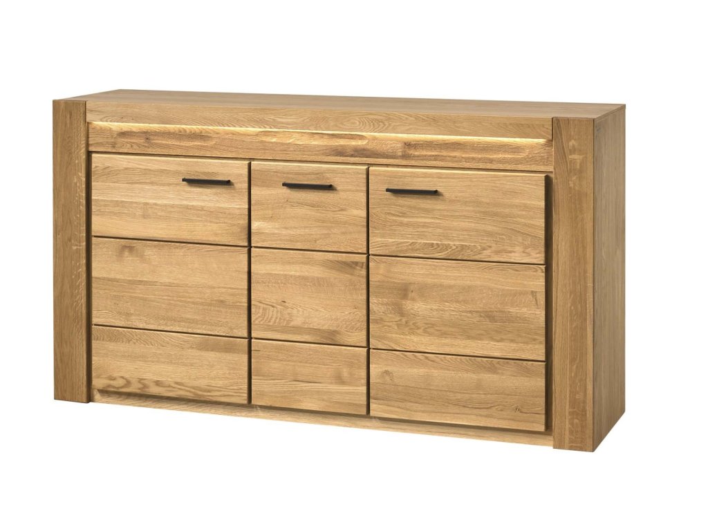 Komoda je trojdverová, vo vnútri sa nachádzajú police. Farebné prevedenie: dub Natura.