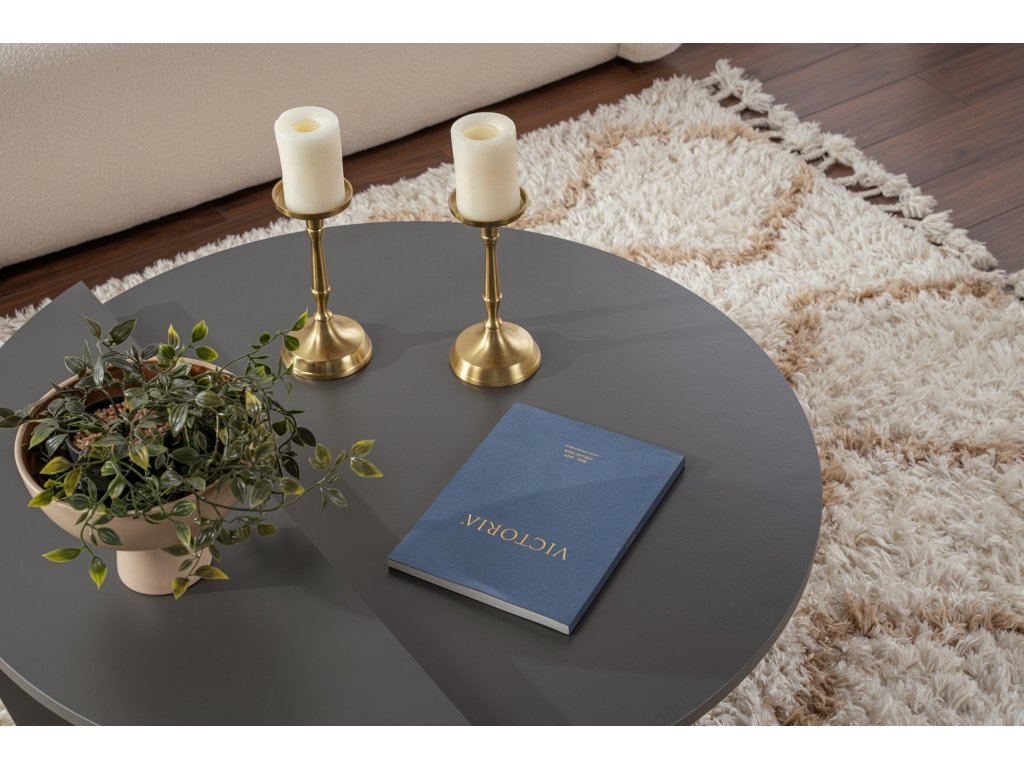 Dodajte svojej obývačke nádych modernej elegancie s týmto elegantným antracitovým konferenčným stolíkom. Jeho čisté línie a minimalistický dizajn z neho robia perfektný ústredný bod každého moderného priestoru. Či už si vychutnávate šálku kávy s priateľmi alebo vystavujete svoje obľúbené dekoračné predmety, tento stolík vás určite ohromí.