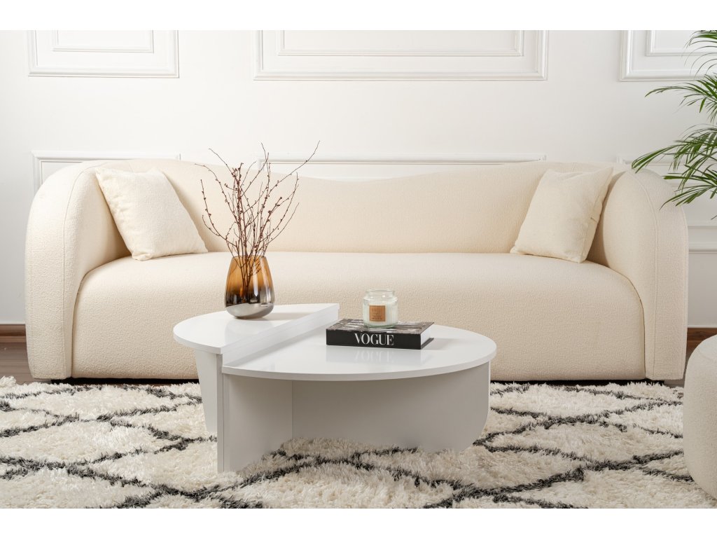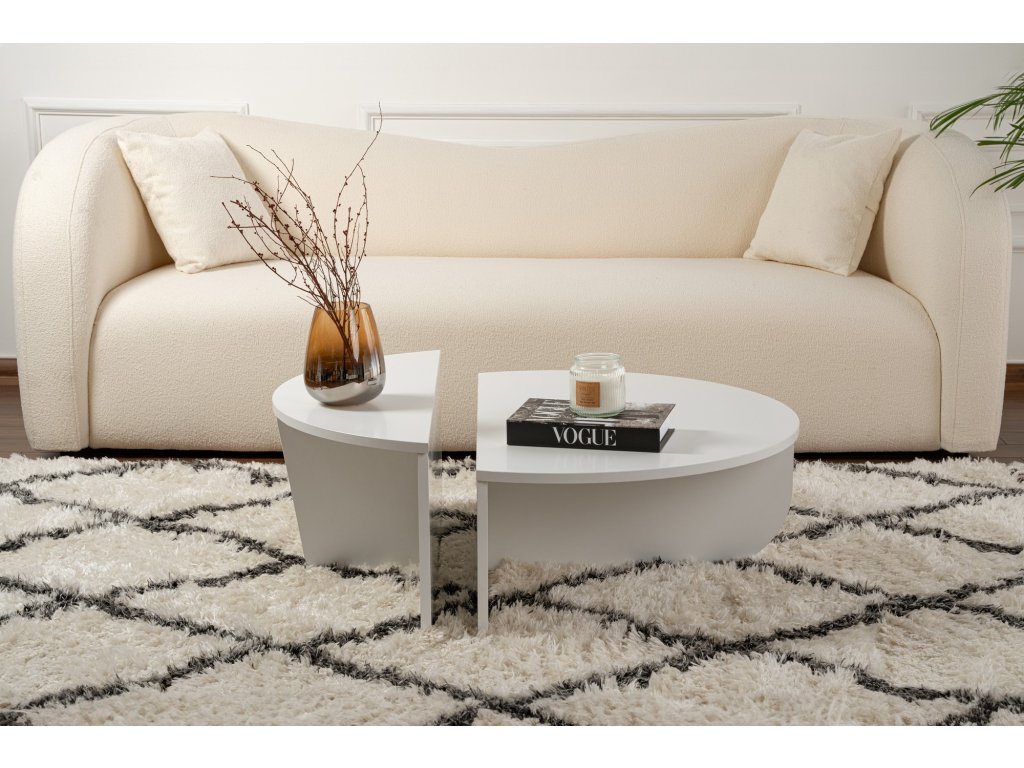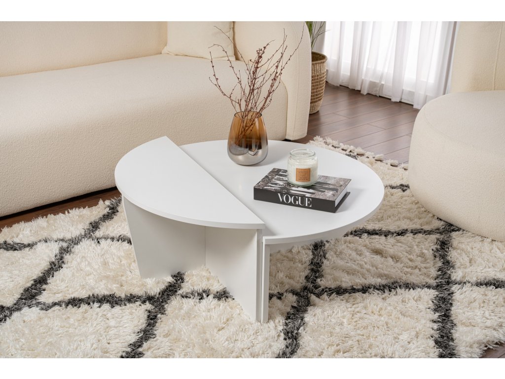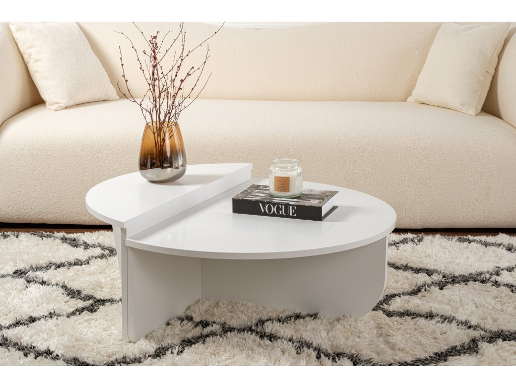 Tento konferenčný stolík je vyrobený zo 100% drevotriesky s melamínovým povlakom a je nielen štýlový, ale aj odolný a má dlhú životnosť. Svieža biela farba dodáva každej miestnosti čistý a svieži vzhľad, takže sa ľahko hodí do akéhokoľvek existujúceho interiéru.