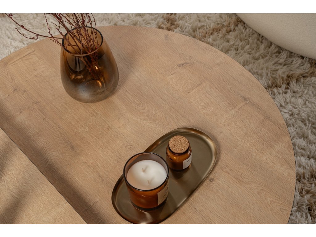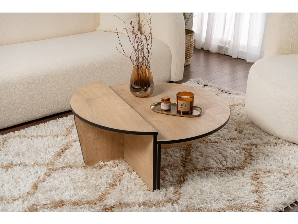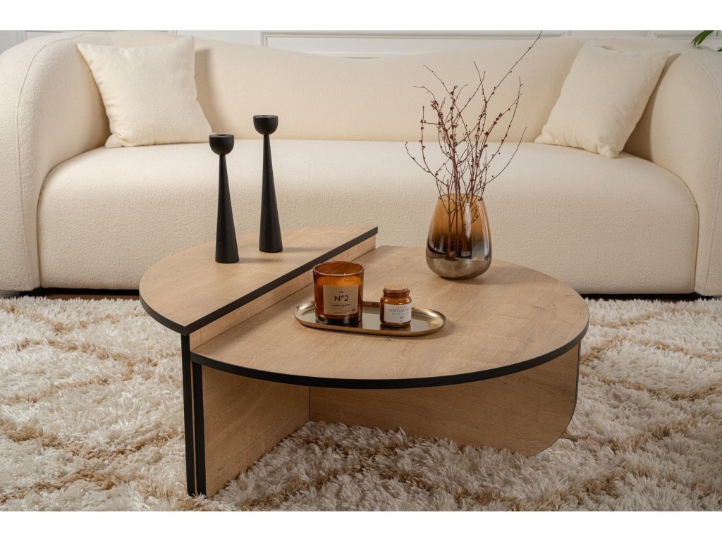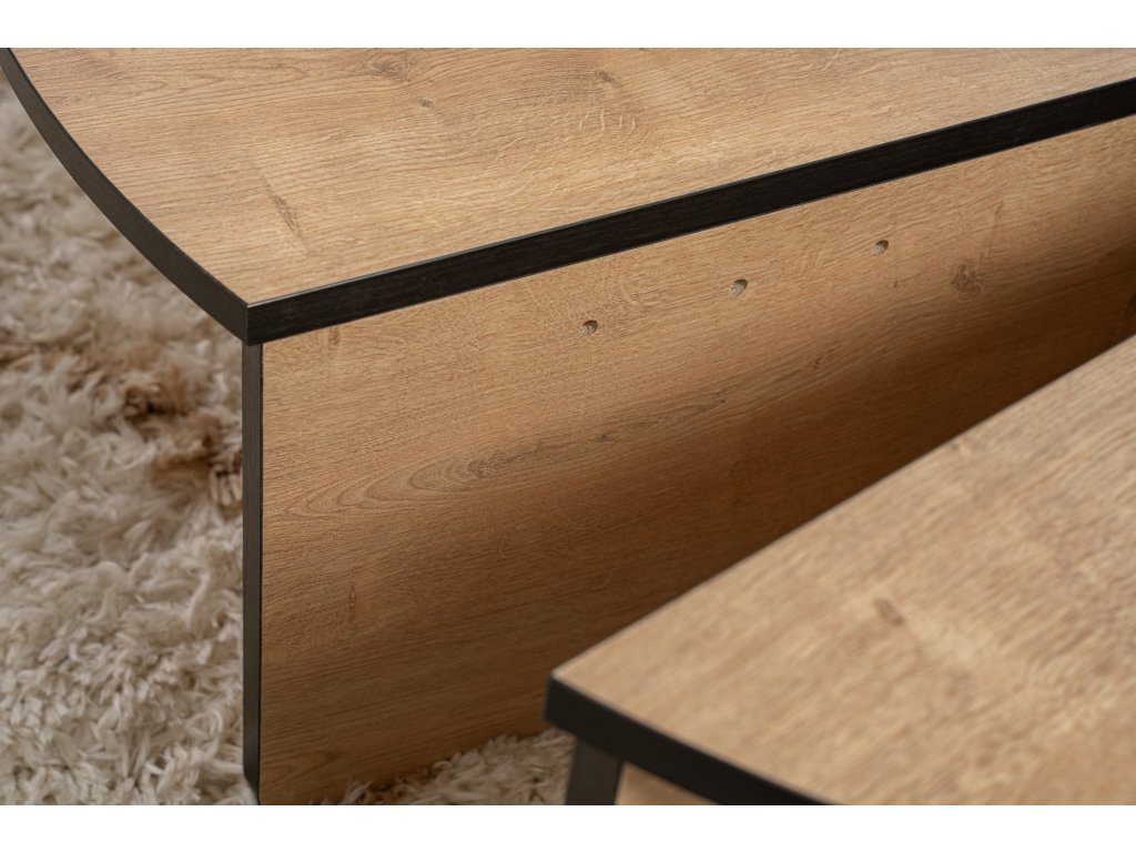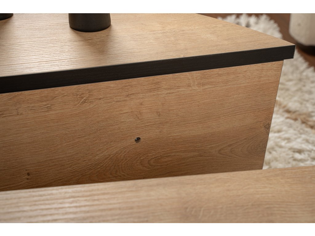 Tento konferenčný stolík je vyrobený zo 100% drevotriesky s ale aj melamínovým povlakom. Hrúbka 18 mm zaisťuje stabilitu a robustnosť, zatiaľ čo čierne hrany dodávajú designu nádych moderného šmrncu.