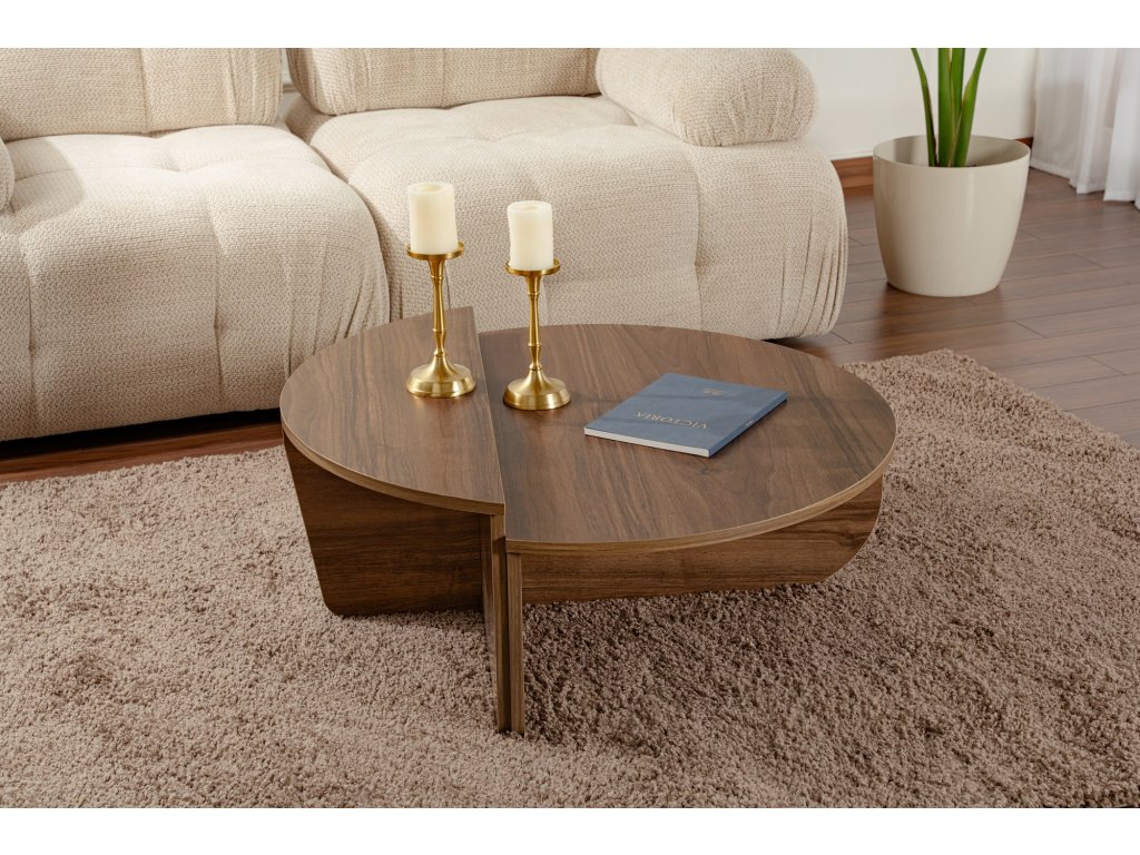 Dodajte svojej obývačke nádych elegancie s týmto krásnym konferenčným stolíkom. Jeho moderný dizajn a sýta orechová farba z neho robí perfektný ústredný bod každého priestoru. Či už si vychutnávate šálku kávy s priateľmi, alebo si len tak oddýchnete doma, tento stolík vám umocní zážitok.