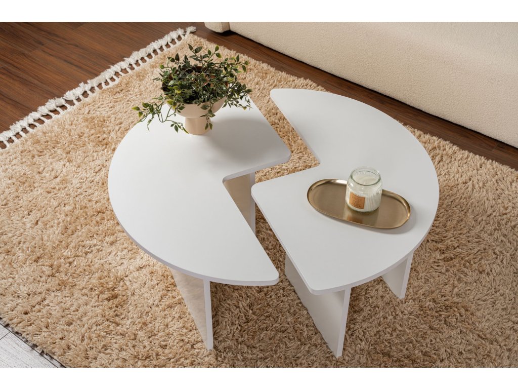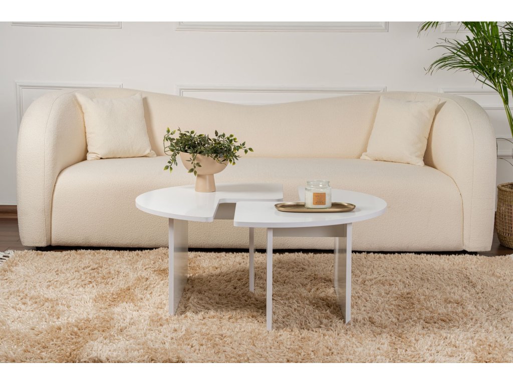 Dvojdielny konferenčný stolík RAMONA, biela prírodná