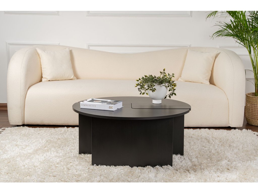 Sýta farba Wood Black tohto konferenčného stolíka okamžite pozdvihne estetiku vášho domova a dodá vašej obývačke alebo salóniku sofistikovaný nádych. Jeho elegantný dizajn a čisté línie z neho robia všestranný kus nábytku, ktorý doplní akýkoľvek štýl interiéru, od moderného po tradičné.