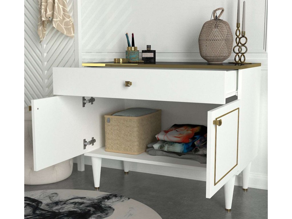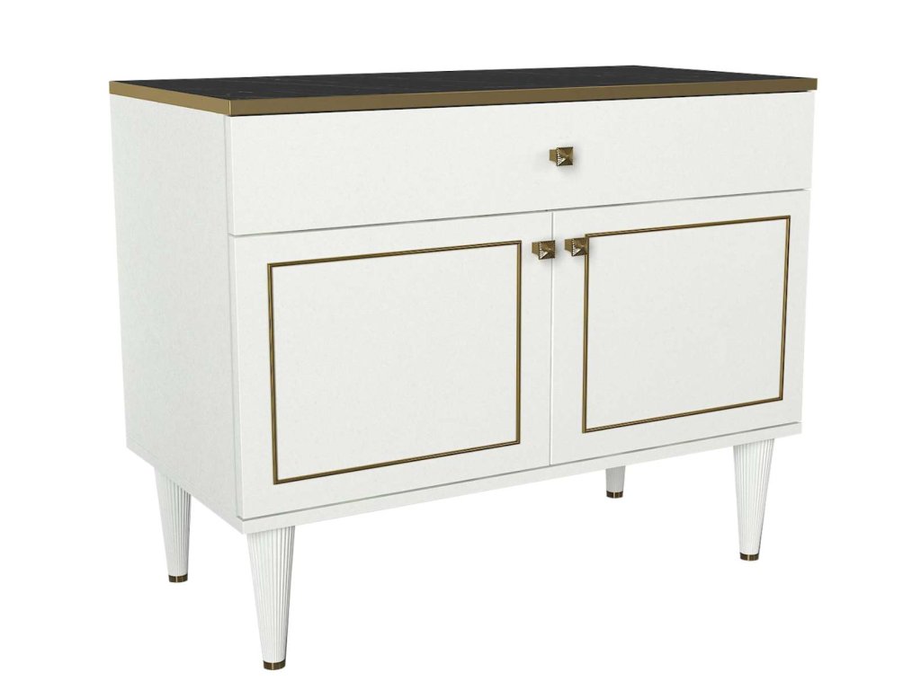 Komoda RAVEN K sa pýši moderným bielym prevedením, ktoré ľahko zapadne do akéhokoľvek interiéru. Je vybavená jednou zásuvkou a skrinkou s dvoma dvierkami, čo poskytuje dostatok úložného priestoru pre vaše veci. LTD materiál s hrúbkou 18 mm zaisťuje pevnosť a dlhú životnosť komody.