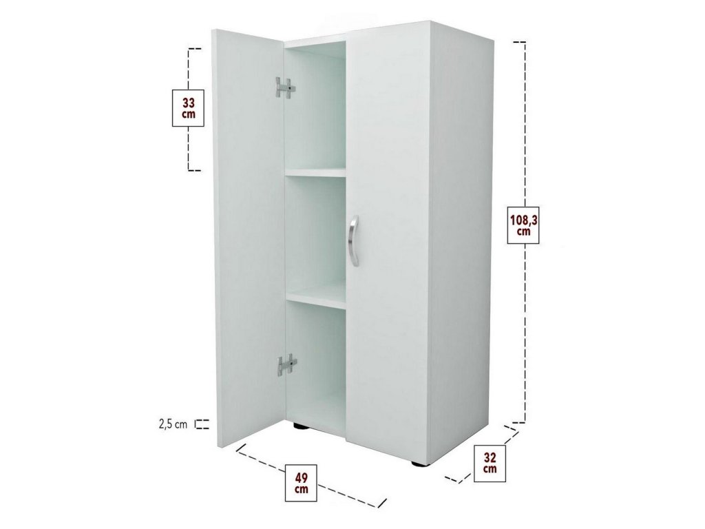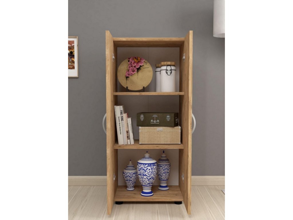 Komoda je dvojdverová, vo vnútri sa nachádzajú police na uloženie vášho oblečenia a podobne.