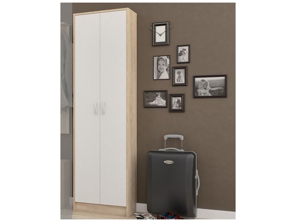 SAGITTA je dvojdverová skriňa v jednoduchom dizajnovom prevedení. Oceníte žiadané farebné prevedenie, kombináciu farieb aj cenovú dostupnosť. Táto malá skriňa je ideálnym nábytkom do vstupnej haly. Vďaka jej rozmerom si svoje miesto nájde aj v inej časti bytu či domu. Skriňa je vyrobená z lamino dosky, ktorá nie je náročná na údržbu. Vnútri skrine sa nachádzajú 2 poličky a priestor na vešanie oblečenia. Farba: dub sonoma/biela. Rozmery (š/v/h): 55,3 x 191,1 x 27,5 cm. V rovnakom farebnom a dizajnovom prevedení ponúkame aj vešiakovú zostavu. Skombinujte si tieto dva produkty a vytvorte si štýlovú a cenovo dostupnú vstupnú halu. Dodávame v demonte.Dodatočné parametre