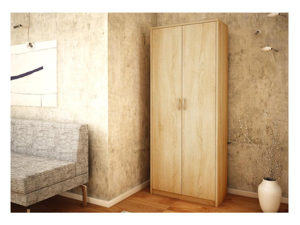 Klasická 2-dverová skriňa MAXIM s 5-timi vnútornými policami, je vyrobená z kvalitnej LTD dosky.