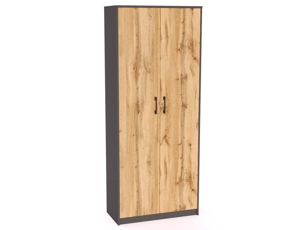 Korpus skrine je vo farbe grafit, dvierka sú v obľúbenom farebnom prevedení dub Wotan. K dispozícií máte ďalšie farebné prevedenia.