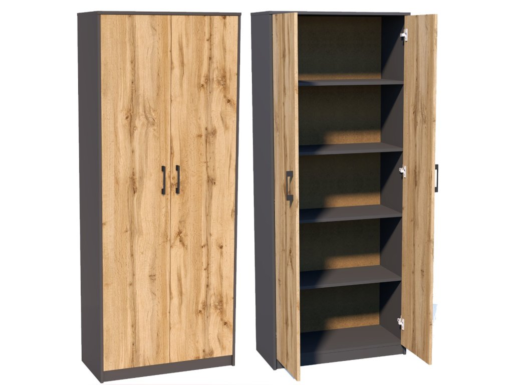 Klasická 2-dverová skriňa MAXIM s 5-timi vnútornými policami, je vyrobená z kvalitnej LTD dosky.