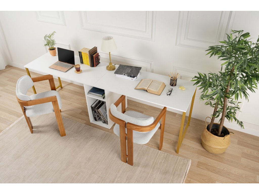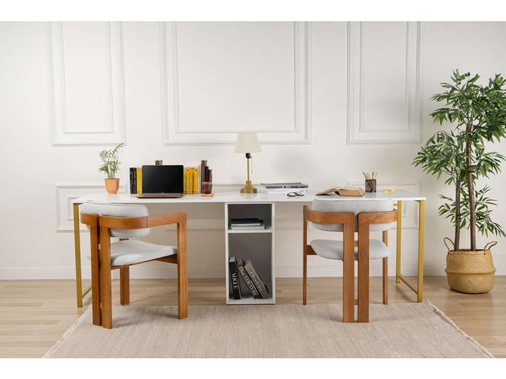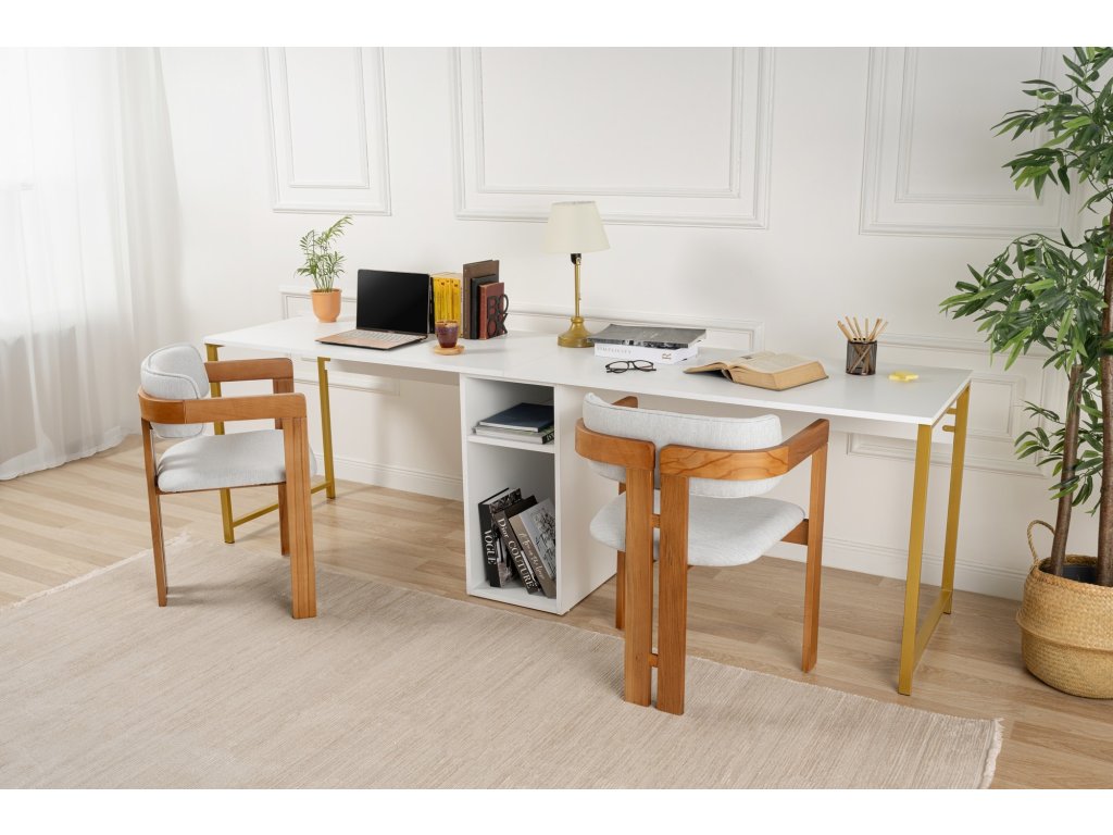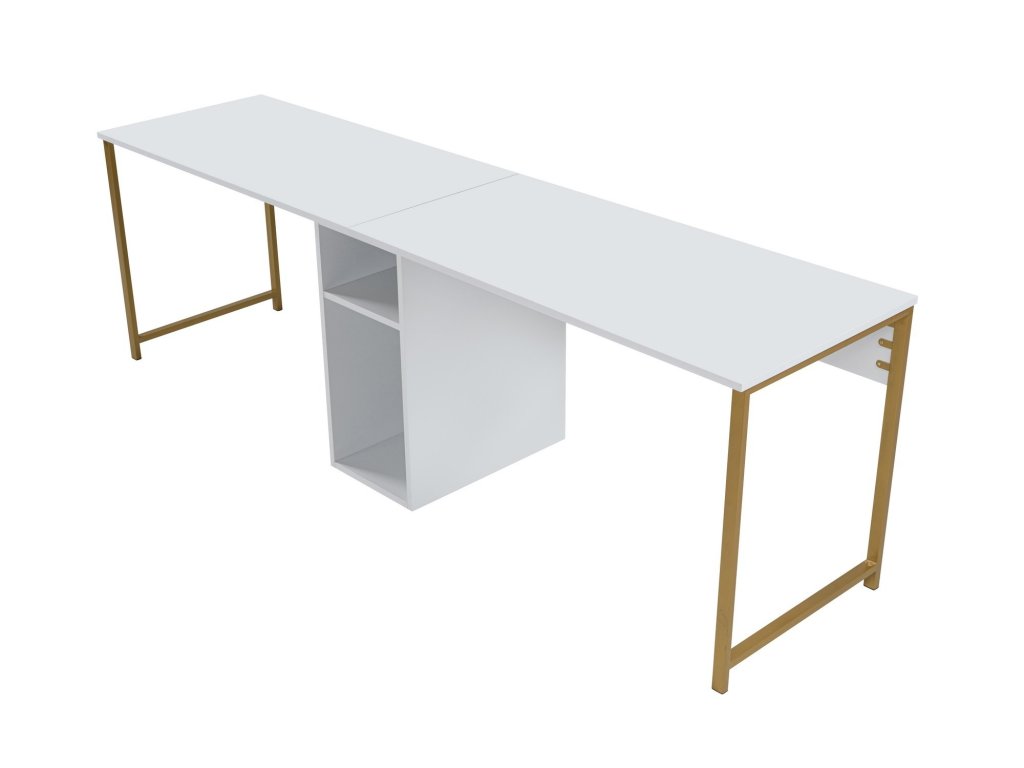 Dvojitý písací stôl DUO, biela / zlatá