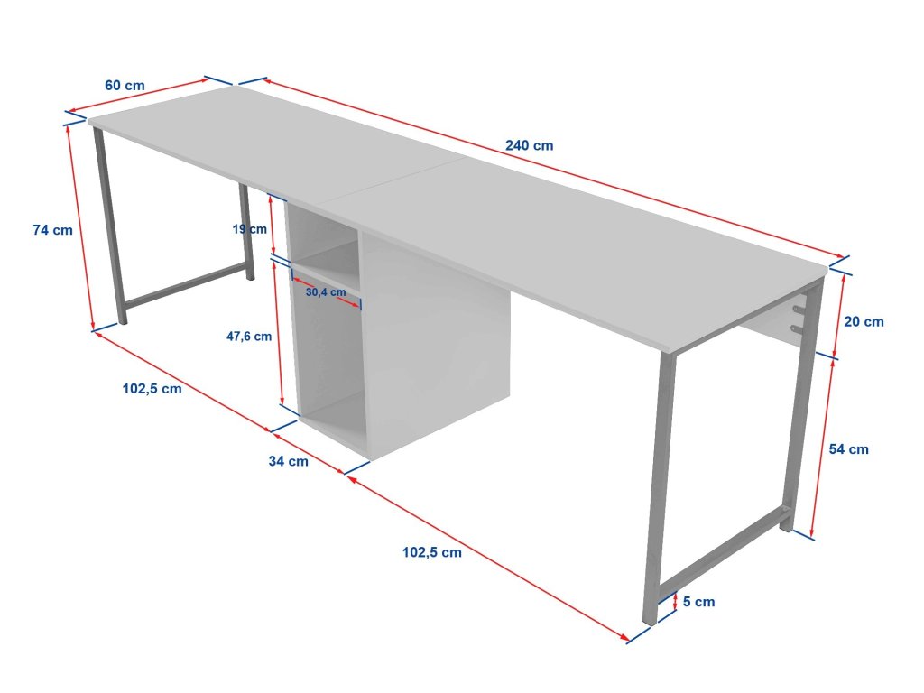 - Kovové nohy s elektrostatickým práškom 240 cm, Výška: 74 cm, Hĺbka: 60 cm