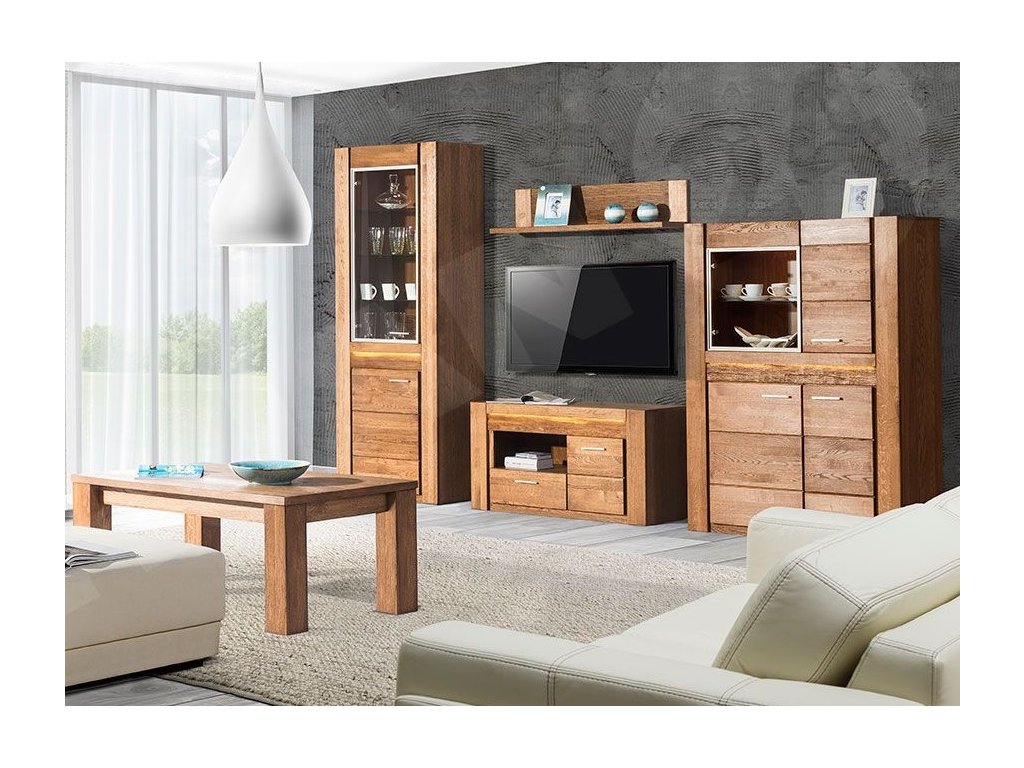 | Zostava obsahuje: | Vitrína 75 x 200 x 42, vitrína 110 x 150 x 42, TV stolík 111 x 58 x 42, polica 111 x 24 x 25 cm. |