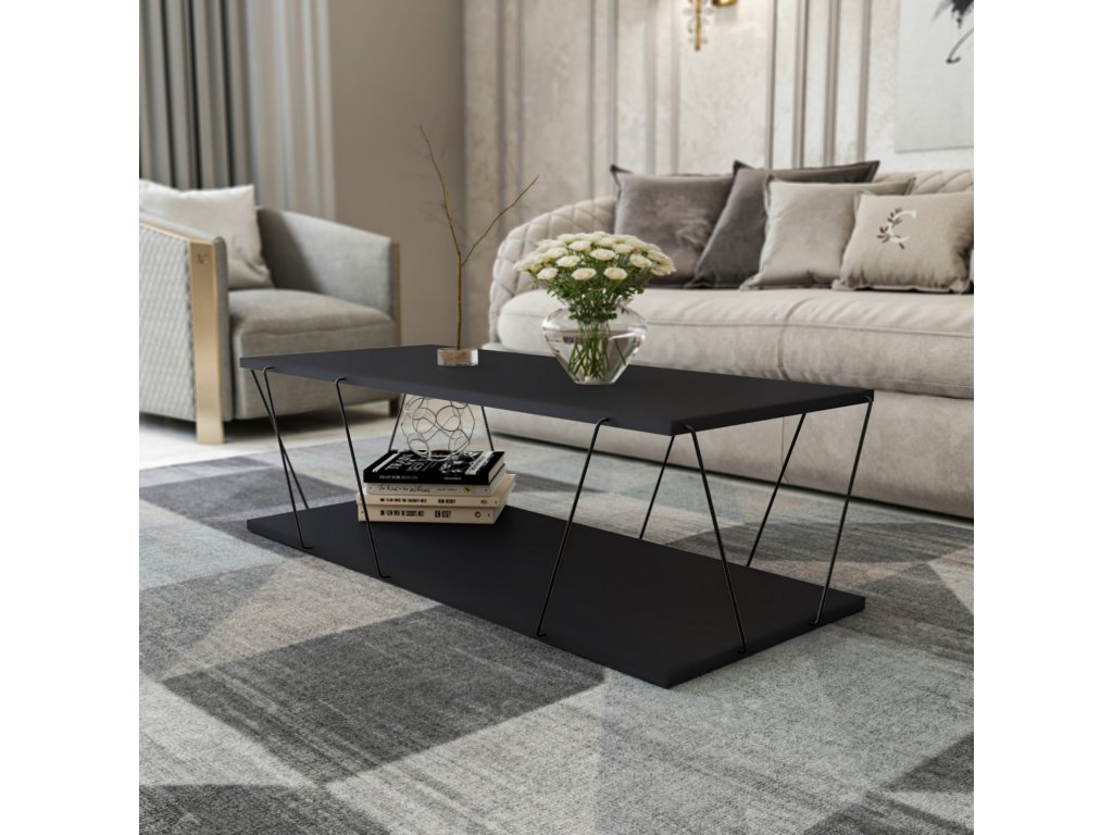 BRANDY je moderný konferenčný stolík navrhnutý v industriálnom štýle, ktorý sa stane štýlovým stredobodom vašej obývacej izby. Kombinácia čiernej a antracitovej farby dodáva stolíku elegantný a súčasný vzhľad.