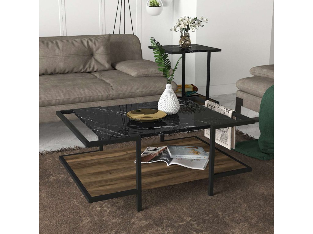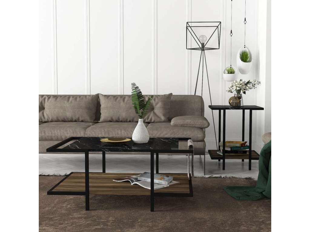 Predstavujeme NERVA, konferenčný stolík, ktorý prináša do vašej obývačky eleganciu a industriálny štýl. Tento štýlový nábytok v kombinácii orechovej farby a mramoru je navrhnutý tak, aby poskytoval praktické a estetické riešenie pre vaše potreby.