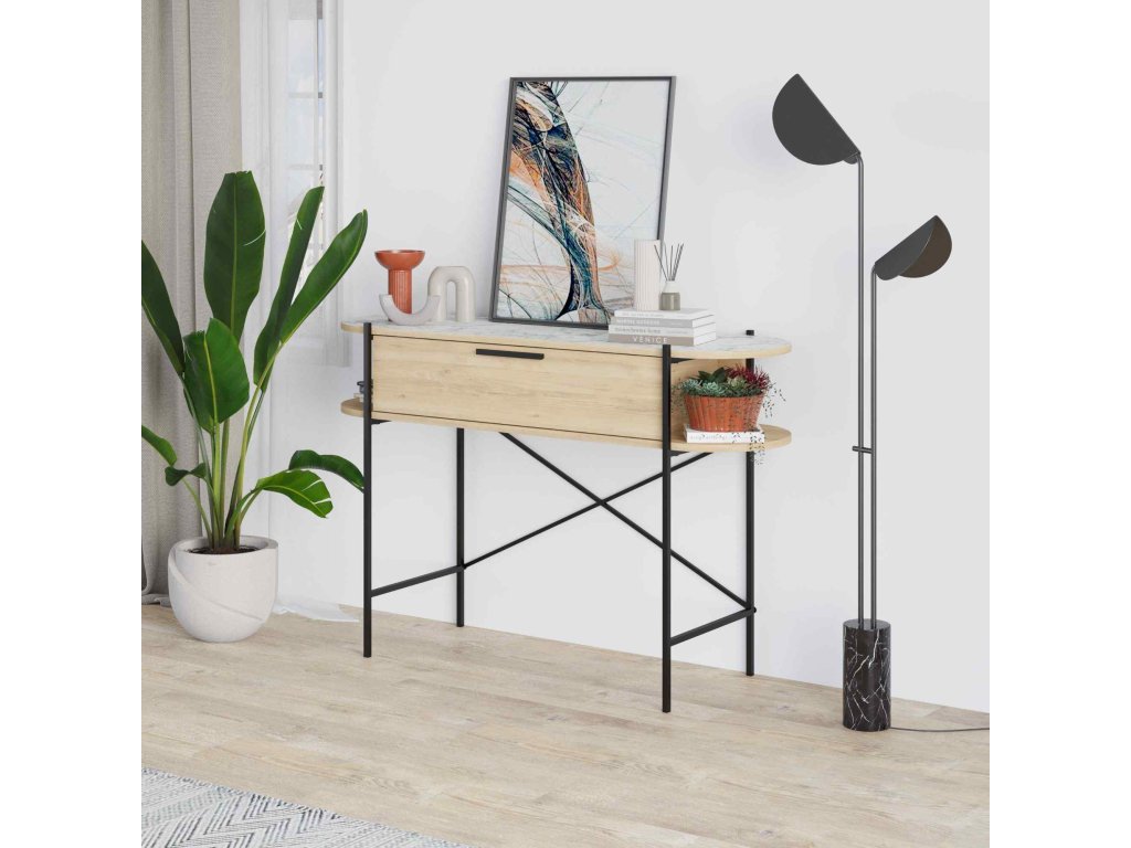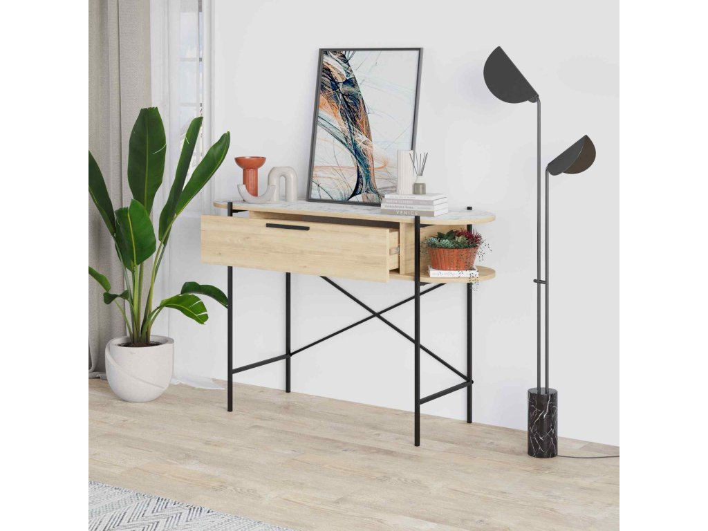 Konzolový stolík LUNA: Moderná loftová elegancia v dube a bielej Carrara