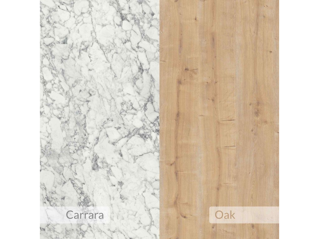 - Farba: Krásna kombinácia prírodného duba a sofistikovanej bielej Carrara dodáva produktu jedinečný vzhľad.