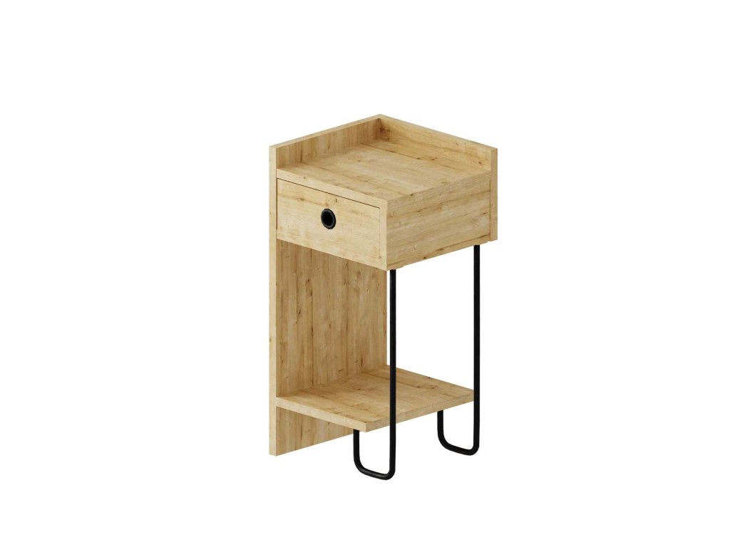 Nočný stolík SNAPE: Industriálna elegancia v dubovom prevedení