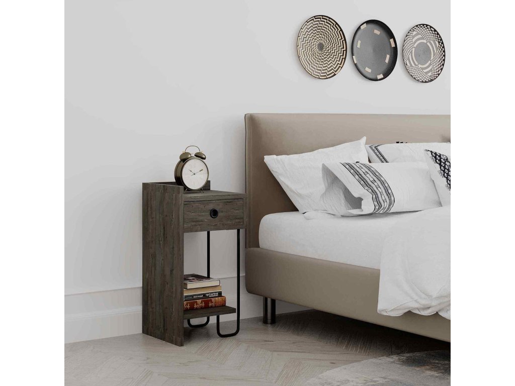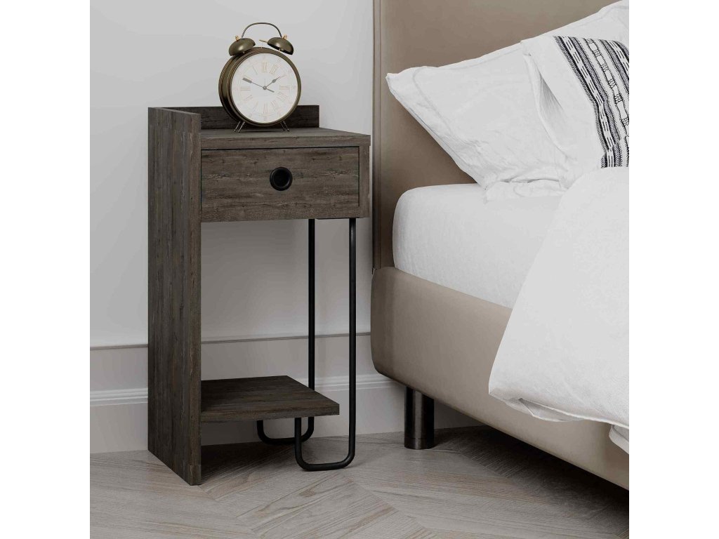 Zažite kombináciu loftového štýlu a elegantnej farby tmavej kávy s nočným stolíkom SNAPE, ideálnym doplnkom pre vašu modernú spálňu.