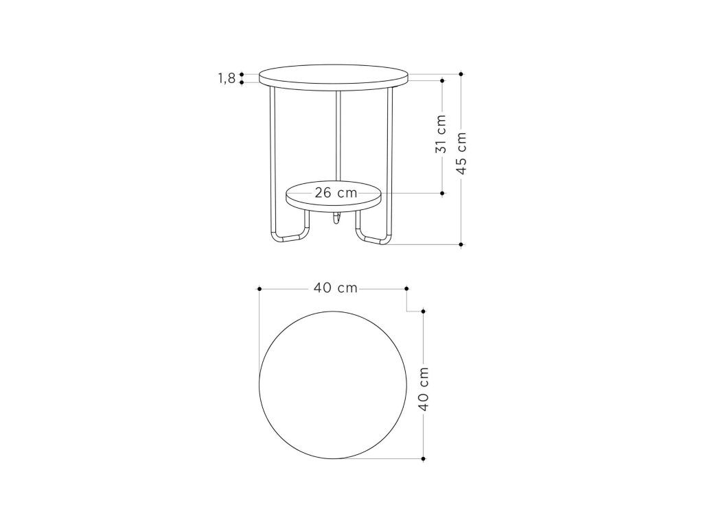 - Materiál: Vysoká kvalita melamínu, VT laminátu a kovu. Lesklé kovové detaily dodávajú stolíku jedinečný vzhľad.