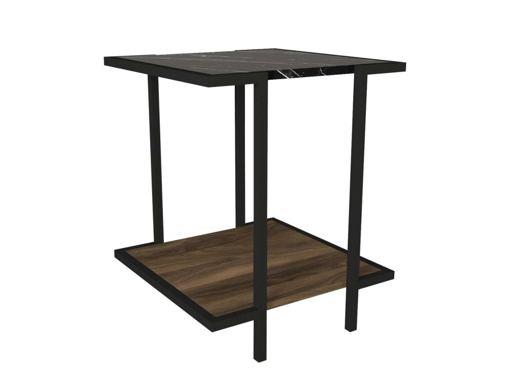 Stolík NERVA sa pýši kombináciou orechového a mramorového prevedenia, ktoré dokonale zapadne do moderných loftových a industriálnych interiérov. Štvorcový tvar a odkladacia polica poskytujú dostatok priestoru pre vaše knihy, časopisy či dekorácie. Robustný LTD materiál s hrúbkou 18 mm zaisťuje dlhú životnosť a pevnosť stolíka.