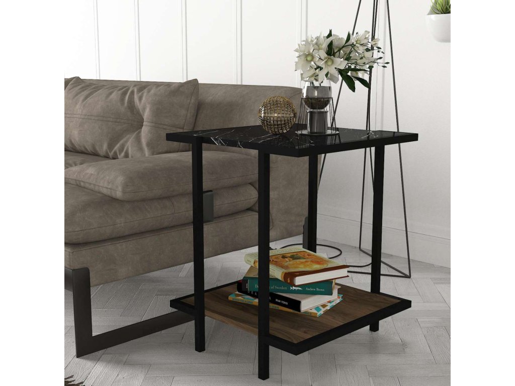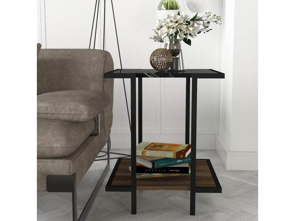 Industriálny príručný stolík NERVA, orech/čierny mramor